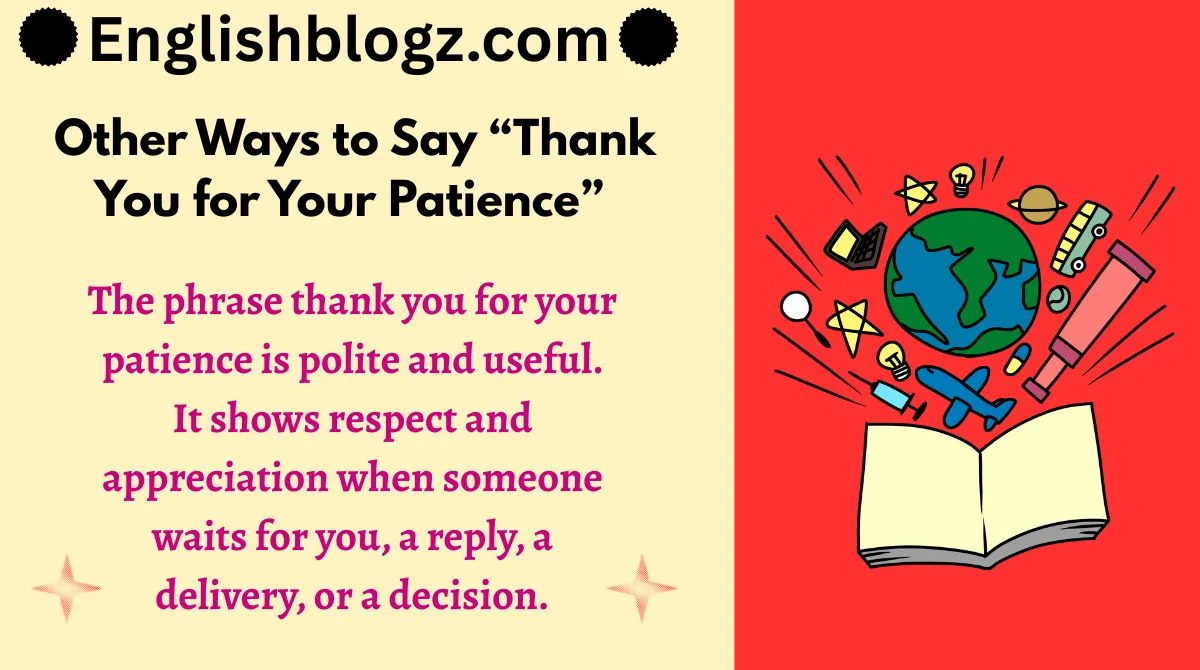 The phrase thank you for your patience is polite and useful. It shows respect and appreciation when someone waits for you, a reply, a delivery, or a decision.