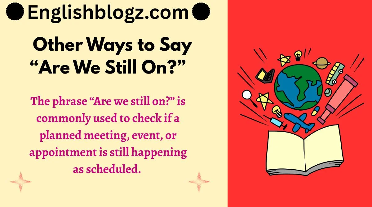 The phrase “Are we still on?” is commonly used to check if a planned meeting, event, or appointment is still happening as scheduled.