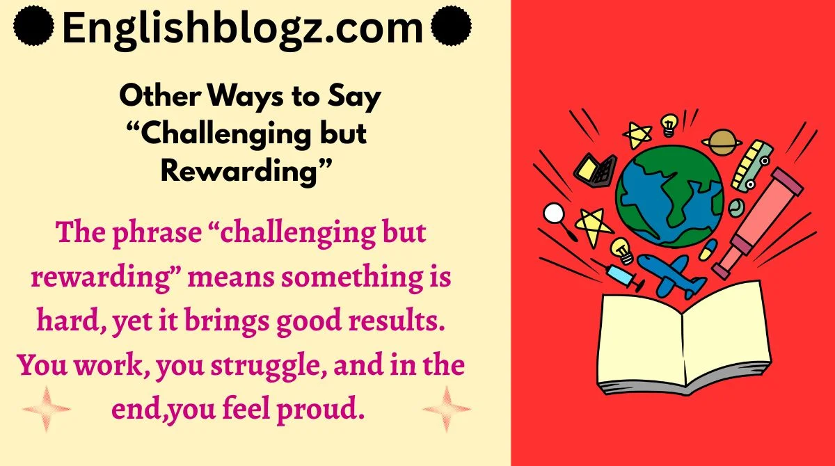 The phrase “challenging but rewarding” means something is hard, yet it brings good results. You work, you struggle, and in the end, you feel proud. People use it in school, work, fitness, and life stories.