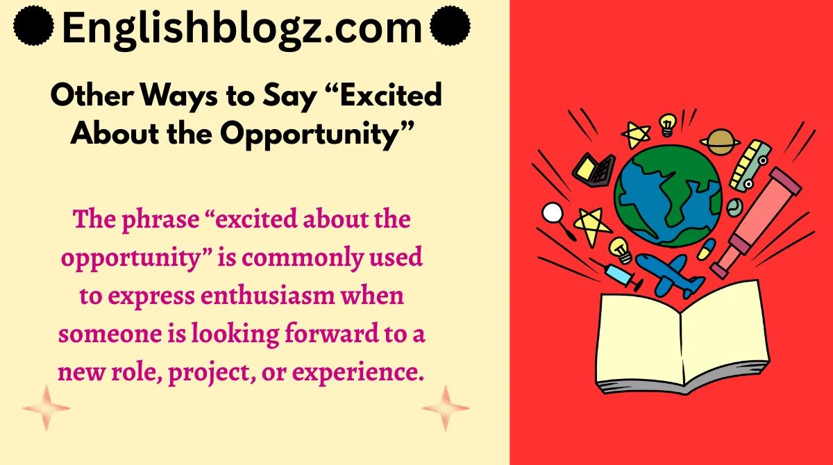 Using alternatives to “excited about the opportunity” allows learners and professionals to express enthusiasm naturally and appropriately.