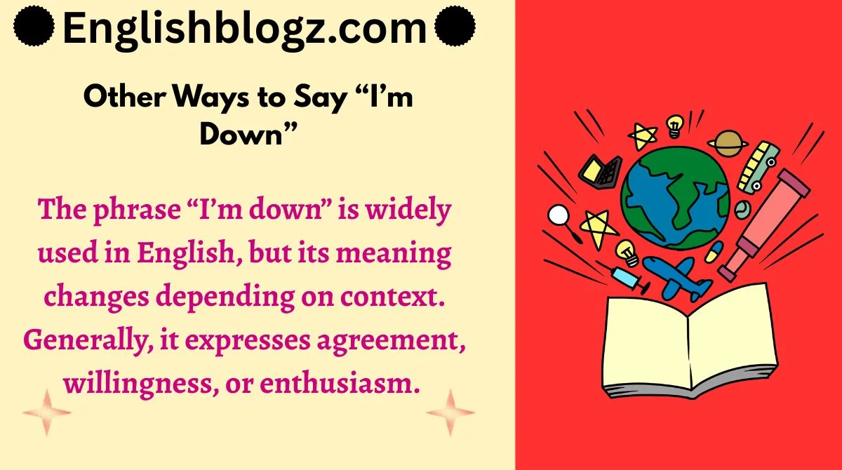 The phrase “I’m down” is widely used in English, but its meaning changes depending on context. Generally, it expresses agreement, willingness, or enthusiasm.