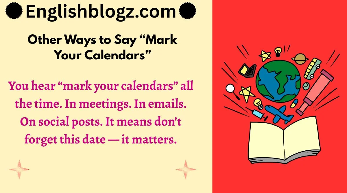 “Mark your calendars” works well, but it is not perfect for every situation. By learning strong alternatives, you gain control over tone and meaning.