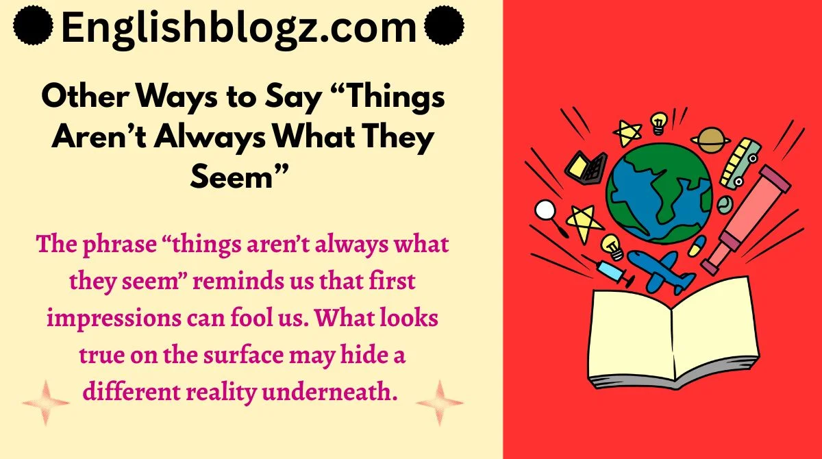 Words shape how others understand you. Using only one phrase limits your voice. Learning alternatives to “things aren’t always what they seem” helps you sound clear, confident, and natural.